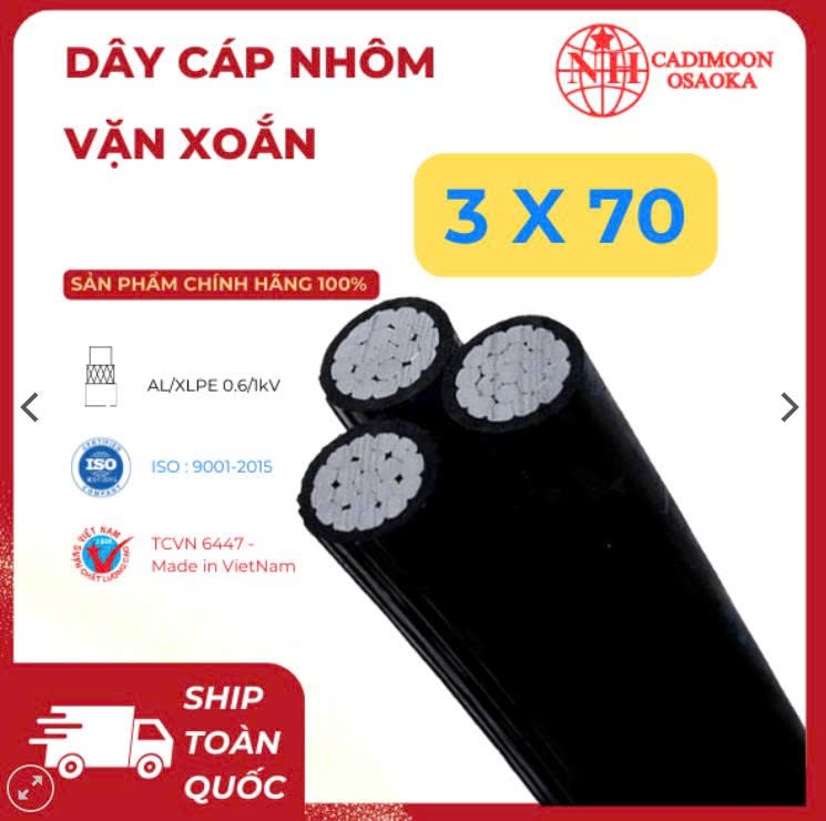 Cáp nhôm vặn xoắn ABC 3x70mm² là lựa chọn hàng đầu cho các công trình điện dân dụng và công nghiệp, đảm bảo truyền tải điện năng ổn định, an toàn và hiệu quả. Sản phẩm tuân thủ tiêu chuẩn TCVN 6447, được sản xuất với công nghệ tiên tiến và vật liệu chất lượng cao.